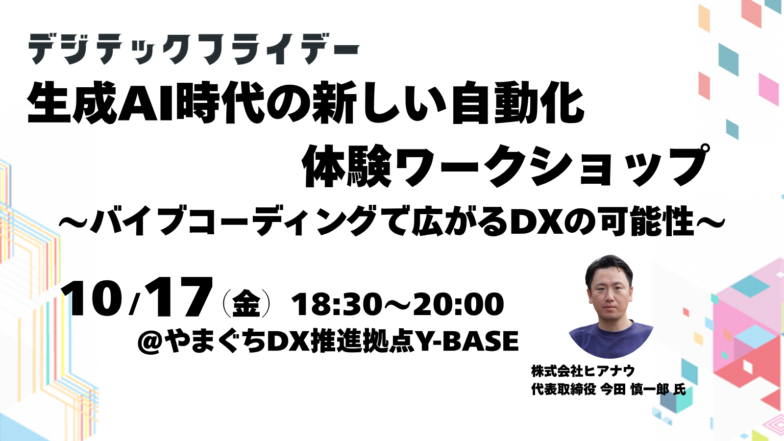 第29回の10月17日(金)は、株式会社ヒアナウ 代表取締役 今田さんと、生成AIを活用した自動化のワークショップを開催します。