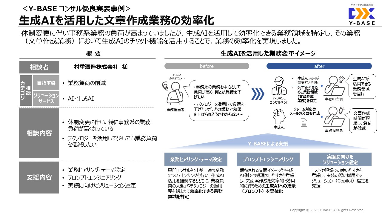 | 相談者 | 村重酒造株式会社 様[コンサル優良事例] |