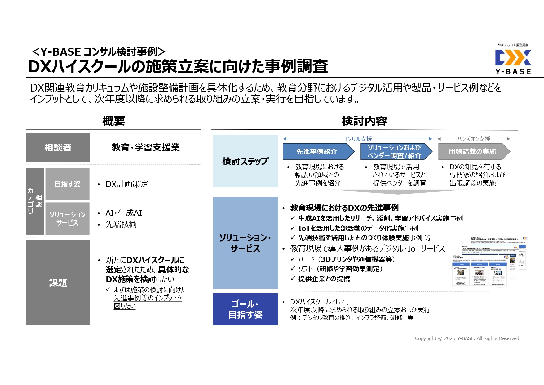 | 相談者 | 教育・学習支援業 様[検討事例] |